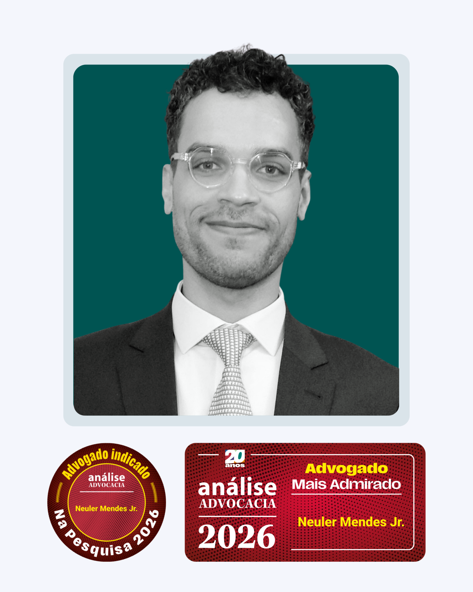 No 1% de Advogados mais jovens dentre os “Mais Admirados” e “Indicados” (Revista Análise Advocacia, 2026).